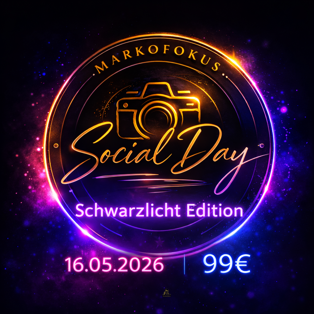 Der erste Social Day startet direkt mit Konzept: Schwarzlicht, Kontrast und besondere Stimmung.